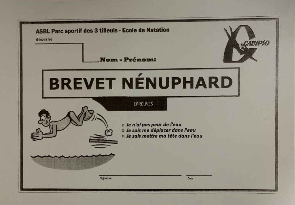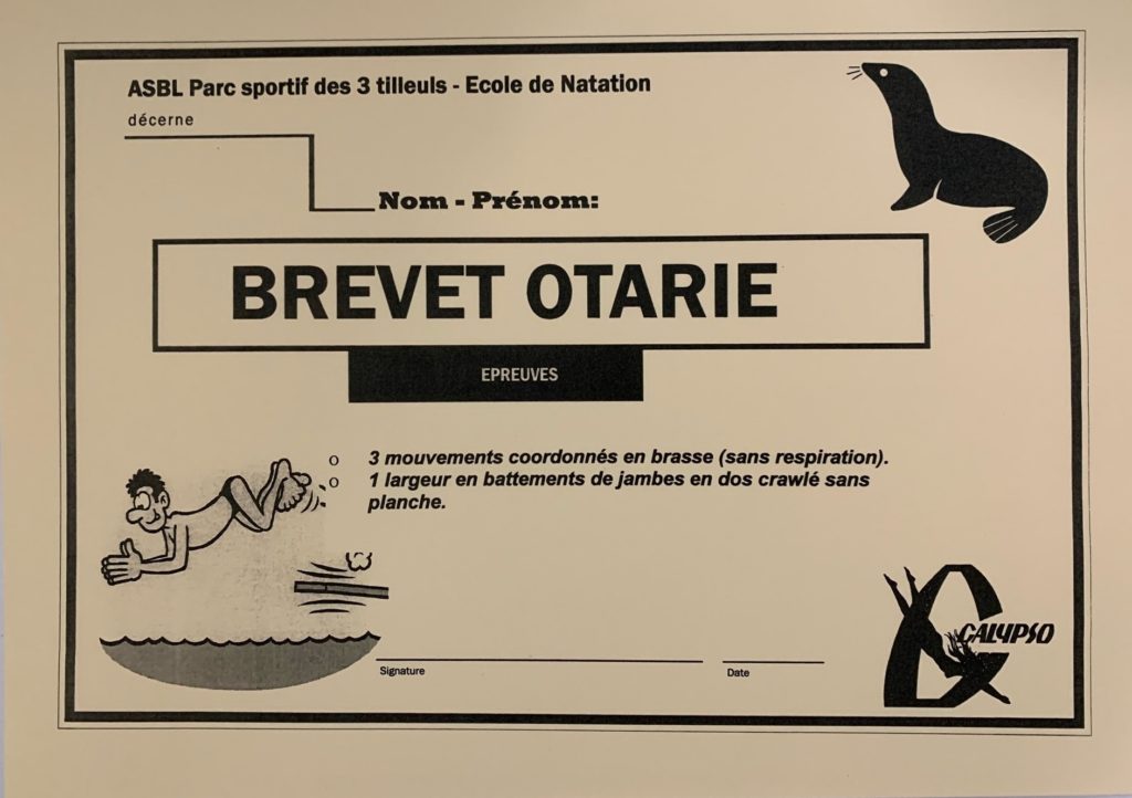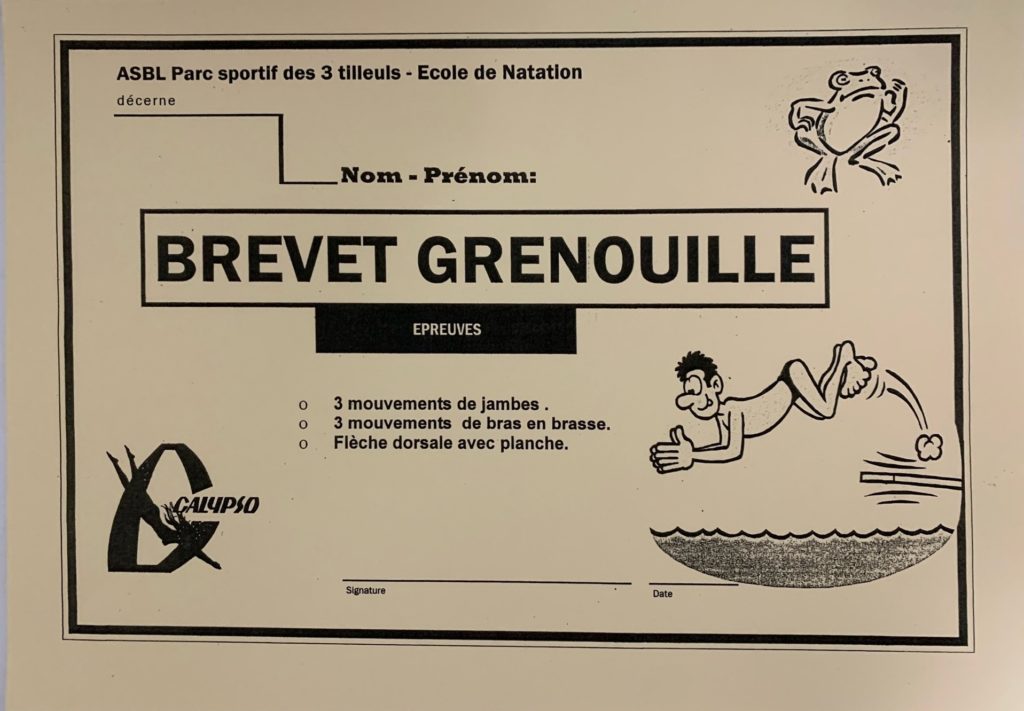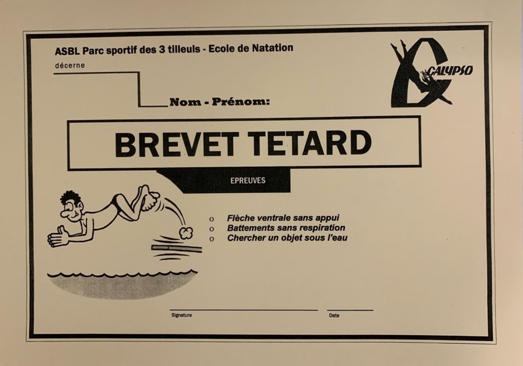 Test : 1) 3x Bras en Brasse. 2) 3x Jambes en Brasse. 3) Se coucher sur le dos.