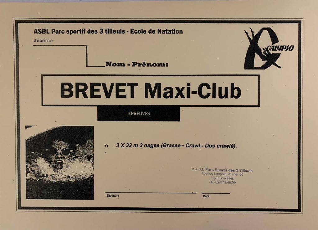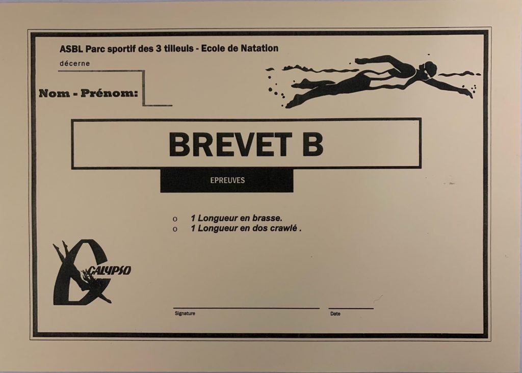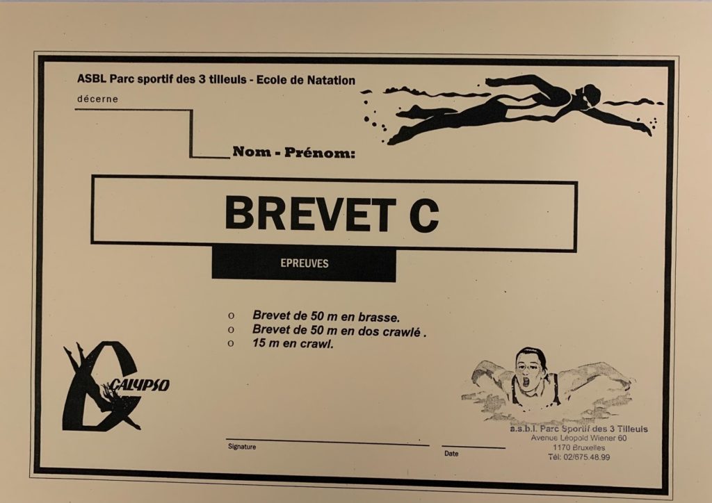 Test : 1) 50m en brasse. 2) 50m en dos crawlé. 3) 15m en crawl.