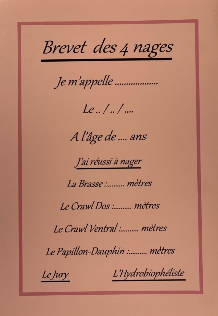 Lorsque l'élève sait effectuer une distance dans une des nages, il peut passer son brevet.